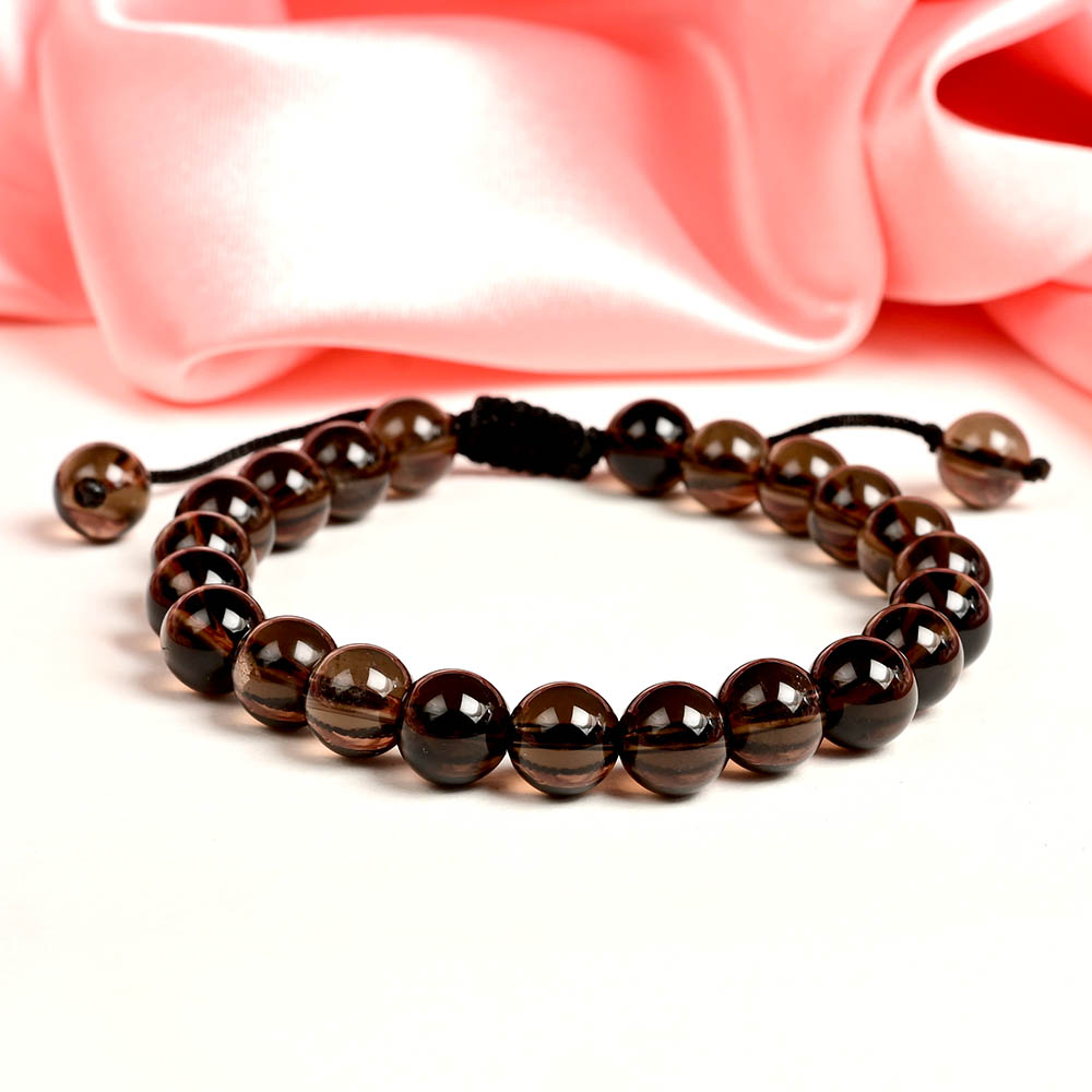 This Smoky Quartz Adjustable Bracelet is crafted with finely polished round beads of natural smoky quartz, strung on a strong adjustable cord that ensures a comfortable and secure fit for all wrist sizes. The translucent to deep brown hues of the beads display a subtle earthy charm, giving the bracelet both elegance and grounding energy. Its sleek and modern design makes it versatile, perfect for daily wear as well as meditation and healing practices. Smoky Quartz is a powerful grounding and protective stone, known to absorb and transmute negative energies into positive vibrations. It helps release stress, anxiety, and emotional blockages while promoting clarity, focus, and inner calm. This stone also strengthens determination and stability, making it ideal for those facing challenges or transitions. Wearing a Smoky Quartz Bracelet shields the aura, balances emotions, and connects the wearer deeply with the Earth’s energies, fostering resilience, strength, and spiritual grounding.