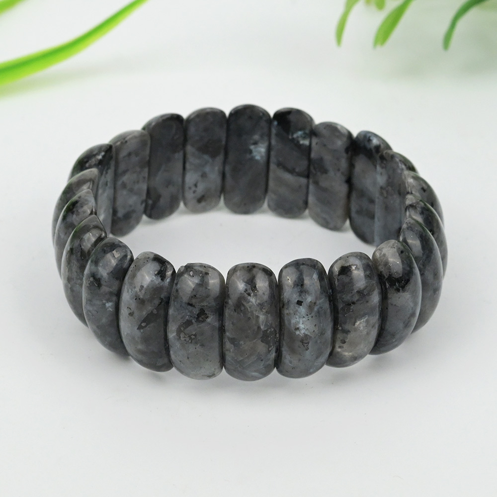 This Snowflake Obsidian bracelet features smooth, polished rectangular beads with a glossy finish, strung together in a stretchable design for easy wear. The natural black stone displays subtle gray and white snowflake-like patterns, giving it a distinctive, earthy appearance. Known for its grounding properties, this bracelet helps balance emotions, clears mental confusion, and promotes inner strength during challenging times.