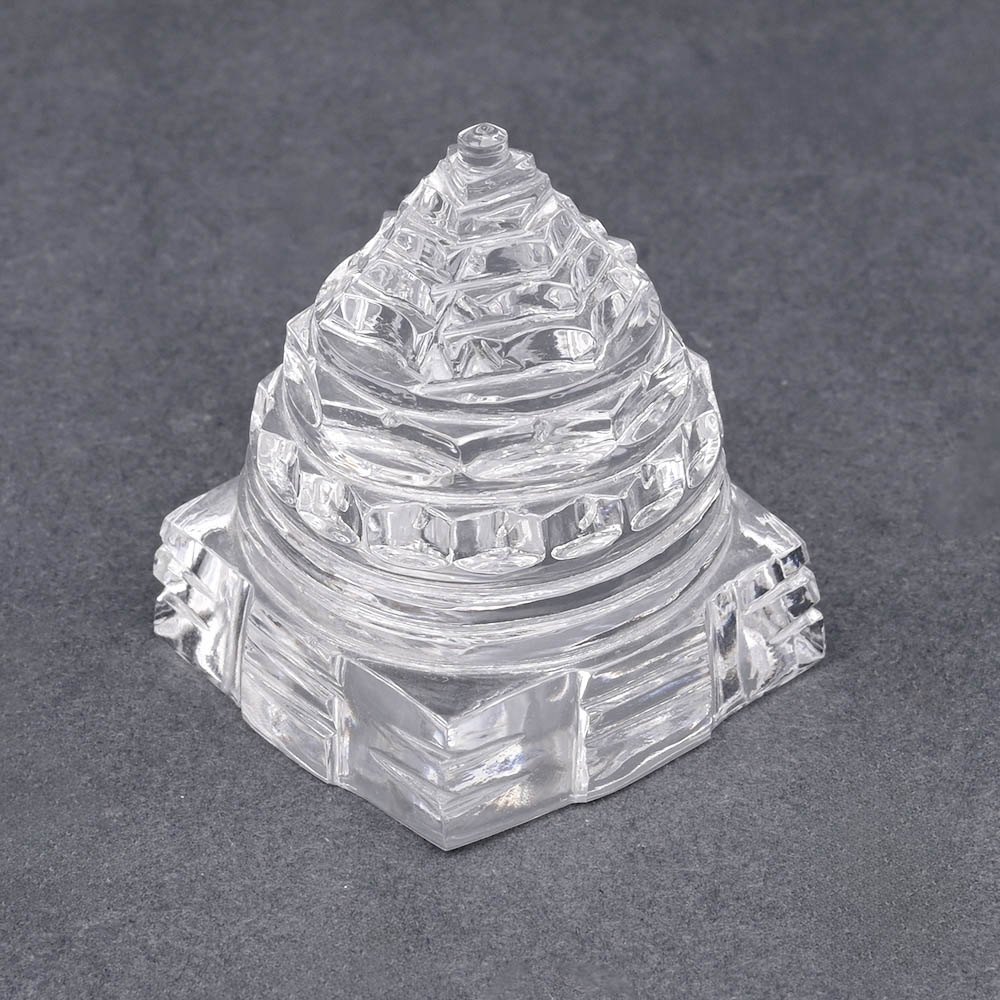 The Sphatik Shree Yantra is a finely carved, multi-tiered geometric structure arranged in a pyramidal form, representing the divine energy of the universe. Crafted from pure, natural Sphatik (crystal quartz), its flawless clarity and intricate symmetry amplify its spiritual power, radiating calming and positive vibrations.