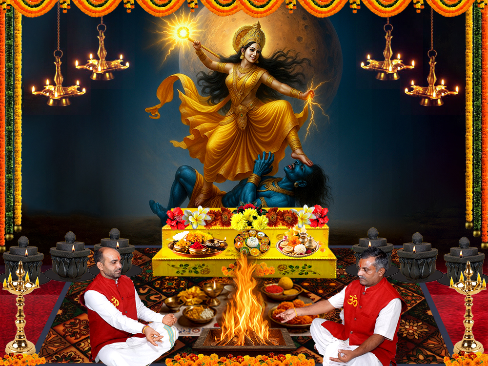 This puja is performed at Maha Shakti Peetha Kamarupa, a highly energized tantric seat of the Divine Mother, where the ritual process invokes Bagalamukhi Devi to neutralize harmful Mars energy and empower the seeker with disciplined strength. Each step is conducted with precision by experienced priests trained in Shakta and tantric vidhi.