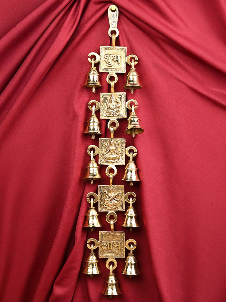 Heavy brass bells with Ganesh and Mahalaxmi and powerful words of Shubh meaning auspicious and Labh meaning Luck embossed in them. They bring auspiciousness to your home/office. The sound of bells is auspicious and cleanses the atmosphere. The Shubh Labh bells are to be hung on doors, in Puja rooms or at the entrance of your home or office.