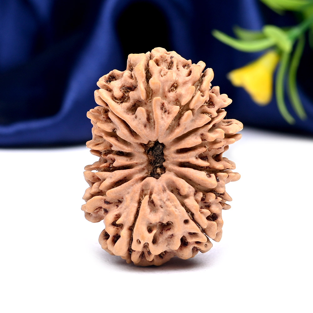The 13 Mukhi Rudraksha embodies Kamadeva, the God of Love. It bestows a hypnotic attraction upon the wearer and aids in manifesting materialistic desires. Kamadeva, blessed by Lord Shiva, blurs the lines between illusions and reality, aligning a person with the right intent for their actions and thus aiding fulfillment. It enhances one’s sexuality and brings joy and zest to life, particularly for those who seek to make the most of the material world. Siddhas wear this Rudraksha to rise above Maya or illusions and thereby awaken Siddhis and raise Kundalini energy.