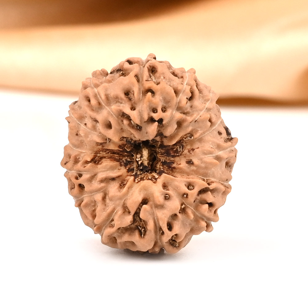 The 14 Mukhi Rudraksha is known as Deva Mani, the most precious divine gem. It embodies the mighty Hanuman and imparts the wearer with unwavering determination, divine insight, and the bravery to conquer any challenge. The wearer traverses the path of righteousness, achieving excellence, victory, and success. Hanuman, also known as Rudravtar, is a devoted disciple of Bhagwan Rama and imbues worshippers with His qualities of sincere devotion and unwavering loyalty towards dharma. Those attuned with this Rudraksha, and thus Lord Hanuman, are guided towards perfect mastery of the senses and virtues such as endurance, fearlessness, and courage. Wearing this Rudraksha helps alleviate uncontrolled anger and fear, bone pains, and blood-related disorders.