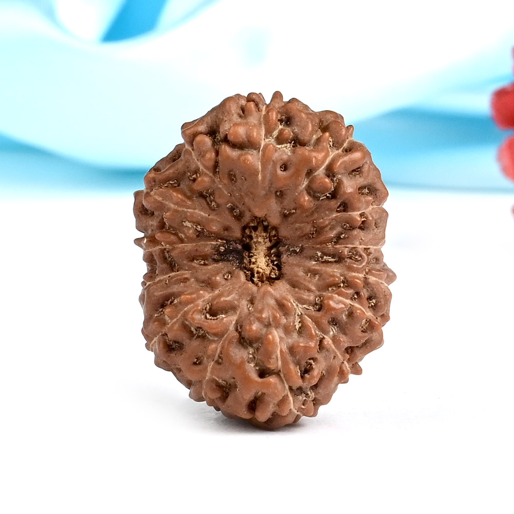The 14 Mukhi Rudraksha is known as Deva Mani, the most precious divine gem. It embodies the mighty Hanuman and imparts the wearer with unwavering determination, divine insight, and the bravery to conquer any challenge. The wearer traverses the path of righteousness, achieving excellence, victory, and success. Hanuman, also known as Rudravtar, is a devoted disciple of Bhagwan Rama and imbues worshippers with His qualities of sincere devotion and unwavering loyalty towards dharma. Those attuned with this Rudraksha, and thus Lord Hanuman, are guided towards perfect mastery of the senses and virtues such as endurance, fearlessness, and courage. Wearing this Rudraksha helps alleviate uncontrolled anger and fear, bone pains, and blood-related disorders.
