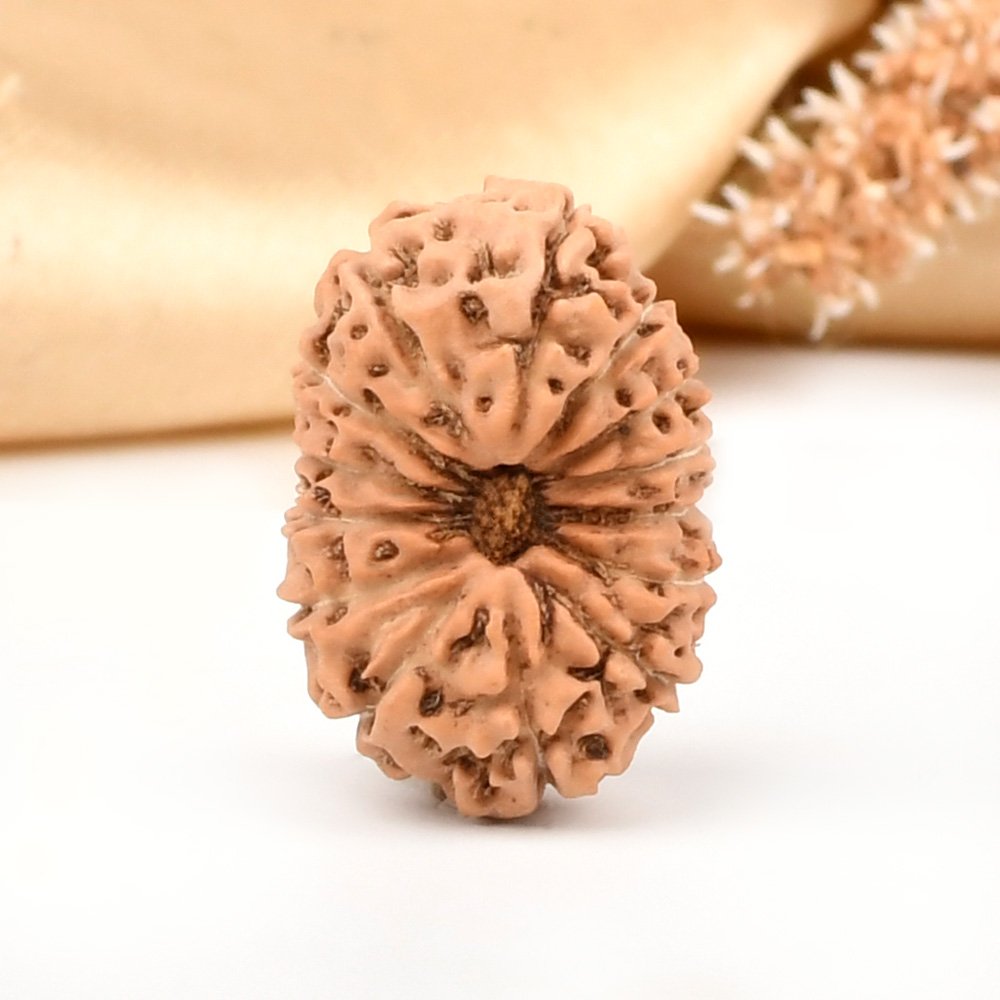 The 14 Mukhi Rudraksha is known as Deva Mani, the most precious divine gem. It embodies the mighty Hanuman and imparts the wearer with unwavering determination, divine insight, and the bravery to conquer any challenge. The wearer traverses the path of righteousness, achieving excellence, victory, and success. Hanuman, also known as Rudravtar, is a devoted disciple of Bhagwan Rama and imbues worshippers with His qualities of sincere devotion and unwavering loyalty towards dharma. Those attuned with this Rudraksha, and thus Lord Hanuman, are guided towards perfect mastery of the senses and virtues such as endurance, fearlessness, and courage. Wearing this Rudraksha helps alleviate uncontrolled anger and fear, bone pains, and blood-related disorders.