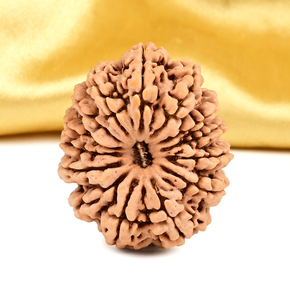 The 14 Mukhi Rudraksha is known as Deva Mani, the most precious divine gem. It embodies the mighty Hanuman and imparts the wearer with unwavering determination, divine insight, and the bravery to conquer any challenge. The wearer traverses the path of righteousness, achieving excellence, victory, and success. Hanuman, also known as Rudravtar, is a devoted disciple of Bhagwan Rama and imbues worshippers with His qualities of sincere devotion and unwavering loyalty towards dharma. Those attuned with this Rudraksha, and thus Lord Hanuman, are guided towards perfect mastery of the senses and virtues such as endurance, fearlessness, and courage. Wearing this Rudraksha helps alleviate uncontrolled anger and fear, bone pains, and blood-related disorders.