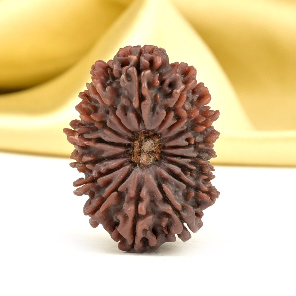 The 16 Mukhi Rudraksha embodies Mahamrityunjaya Shiva, who represents the eternal aspect of the self, transcending the cycles of life and death and symbolizing immortality and transcendence. The wearer is blessed with good health, protection, mental fortitude, and resilience, and is guided towards realizing their full potential. It eliminates fears, phobias, depression, and negative thinking, while aiding in resolving unlawful disputes and court cases in one’s favor. It also gives the wearer the strength to let go of what no longer serves the present moment, alleviating the burden of accumulated stress from clinging. According to the Katyayani Tantra, this divine Rudraksha safeguards against various diseases, including chronic and fatal ones. The Mahamrityunjaya mantra is recited during times of illness to protect against untimely death. The healing properties of this Rudraksha support curing low back pain, kidney, bladder, and large intestine ailments.