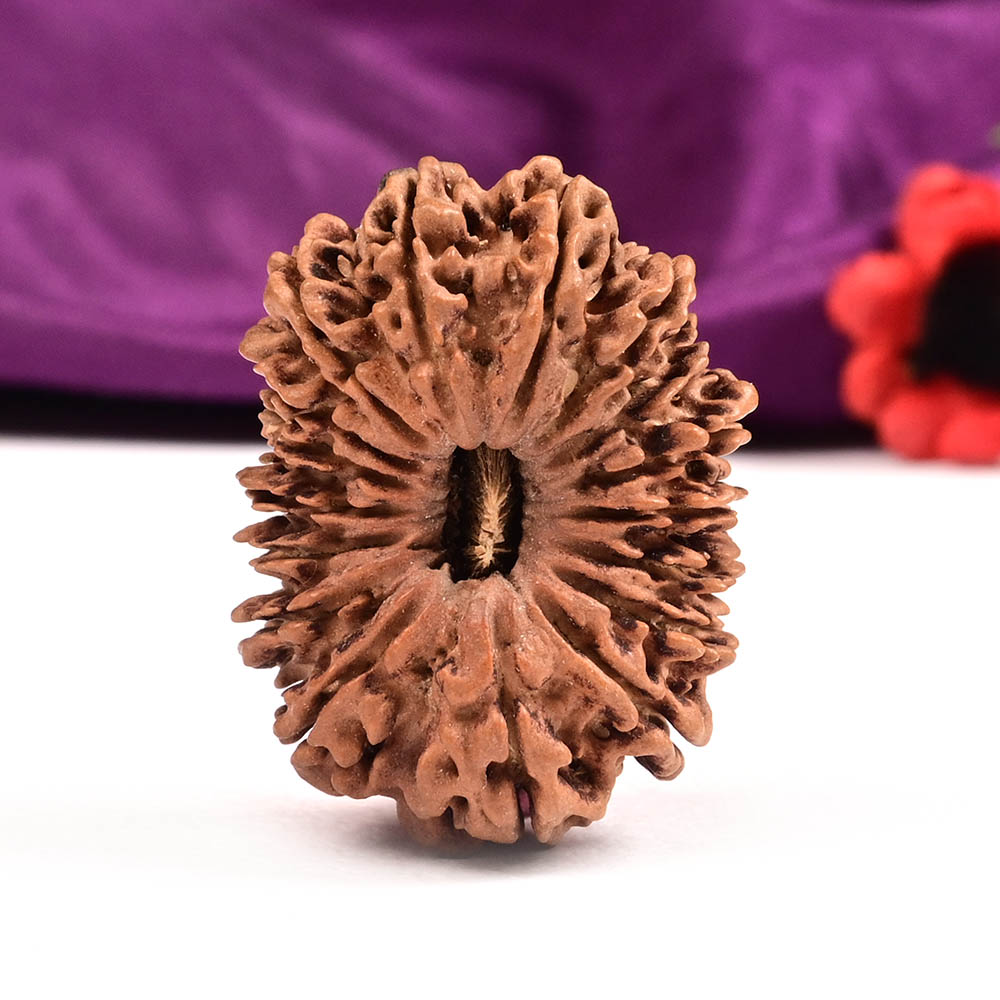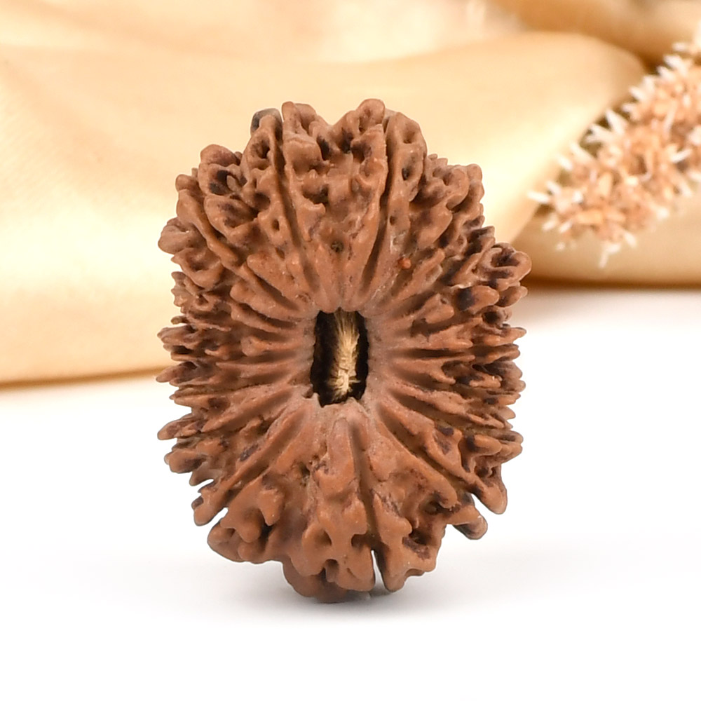 The 17 Mukhi Rudraksha symbolizes Katyayani Devi, the sixth form of Durga. Worshipping this goddess grants the wearer the four fruits of life: Dharma, Artha, Kama, and Moksha. This Rudraksha promotes transcendence over all boundaries, guiding the wearer to embrace non-duality in every aspect of life, including thoughts, actions, and spiritual awareness. On a psychic level, it enhances superior intuition, clairvoyance, telepathic abilities, self-control, intellectual identification, and creative intelligence. It is especially beneficial for project leaders, businessmen, political leaders, and anyone desiring career growth. According to the Katyayani Tantra, this Rudraksha blesses the wearer with immense power for wealth creation and divine magnetism. It helps fulfill desires related to finding a life partner, having progeny, and attracting desired outcomes through the power of command. It also clears illusions and ignorance, helping the wearer see reality and transform it with innate intelligence.