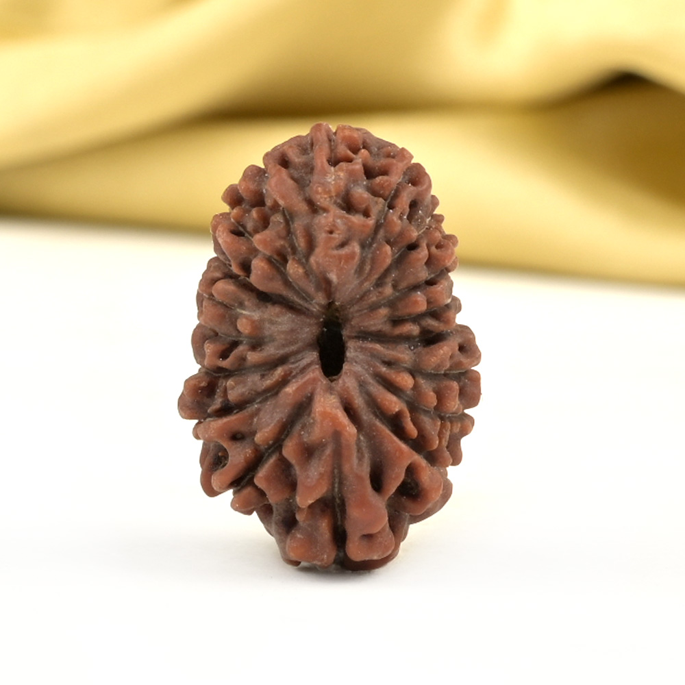 The 18 Mukhi Rudraksha embodies Bhumi Devi, Mother Earth, the nurturer of all living beings. Bhumi Devi is a manifestation of Goddess Lakshmi and the consort of Bhagawan Vishnu. According to the Katyayani Tantra, wearing this Rudraksha blesses the wearer with support, property, land, balance, and abundance. This bead acts on the Muladhara (Root Chakra), bringing stability and security in one’s life. It helps bring profit from land deals, supports the accumulation of material assets, and bestows a healthy body structure along with virtues such as penance, patience, and stamina. It aids in grounding and centering oneself, removing mental barriers like fear of loss or lack. Therapeutically, it is beneficial for healing knee, leg, and bone pains.