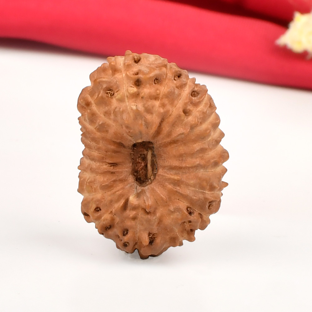 20 Mukhi Rudraksha embodies Bhagawan Brahma, the Creator of the Universe. It bestows blessings for the acquisition of divine knowledge in various realms such as creation, sciences, arts, and music. Katyayani Purana mentions that the wearer transforms into a creator, possessing vast knowledge and intellect and is endowed with great mental power to bring intentions to reality. This Rudraksha is worn by those aspiring to manifest projects for the betterment of humanity. The 20 Mukhi Rudraksha grants the power of creation, enabling the manifestation of projects that benefit humanity and bring prosperity and wealth. Therapeutically, wearing this Rudraksha alleviates anxiety.