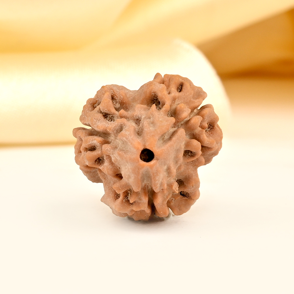 3 Mukhi is ruled by the planet Sun. It enhances the beneficial effects and removes the malefic influences of the Sun. A harmonious Sun in the natal chart empowers individuals to fully utilize their resources and pursue their life purpose with enthusiasm and determination. The Sun is a symbol of self-awareness and provides us with guidance and strength. Its high ranking on the chart gives individuals a vibrant and captivating presence. It promotes present moment awareness and empowers them to harness their inner strength instead of giving it away to others. This essence is bestowed upon the wearer of the 3 Mukhi Rudraksha.