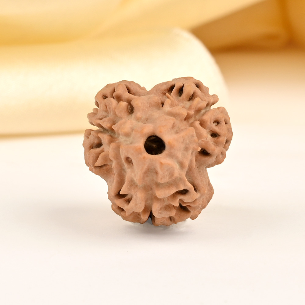 3 Mukhi is ruled by the planet Sun. It enhances the beneficial effects and removes the malefic influences of the Sun. A harmonious Sun in the natal chart empowers individuals to fully utilize their resources and pursue their life purpose with enthusiasm and determination. The Sun is a symbol of self-awareness and provides us with guidance and strength. Its high ranking on the chart gives individuals a vibrant and captivating presence. It promotes present moment awareness and empowers them to harness their inner strength instead of giving it away to others. This essence is bestowed upon the wearer of the 3 Mukhi Rudraksha.