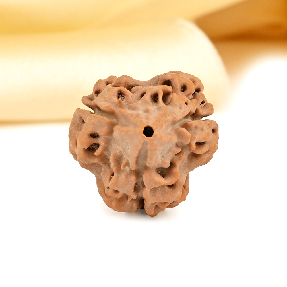 3 Mukhi is ruled by the planet Sun. It enhances the beneficial effects and removes the malefic influences of the Sun. A harmonious Sun in the natal chart empowers individuals to fully utilize their resources and pursue their life purpose with enthusiasm and determination. The Sun is a symbol of self-awareness and provides us with guidance and strength. Its high ranking on the chart gives individuals a vibrant and captivating presence. It promotes present moment awareness and empowers them to harness their inner strength instead of giving it away to others. This essence is bestowed upon the wearer of the 3 Mukhi Rudraksha.