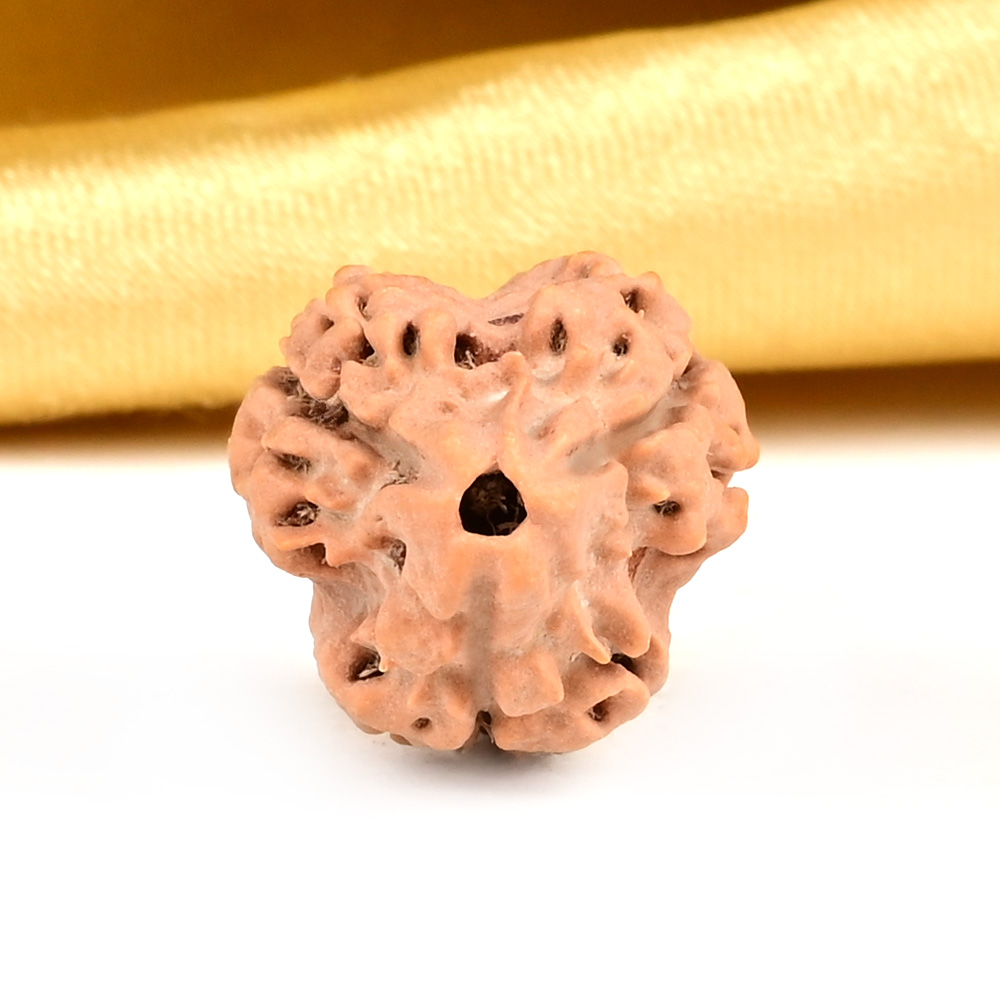 The 3 Mukhi Rudraksha represents Agni, the deity of fire. This Rudraksha has the ability to burn past karma, purify consciousness, and liberate individuals from the bondage of their past. This sets the stage for achieving success through virtuous actions in one's current existence. The 3 Mukhi Rudraksha has the power to purify one's past impressions of anger, hurt, shame, and stress, connecting them to their true and pure self, just like fire burns everything yet remains pure.