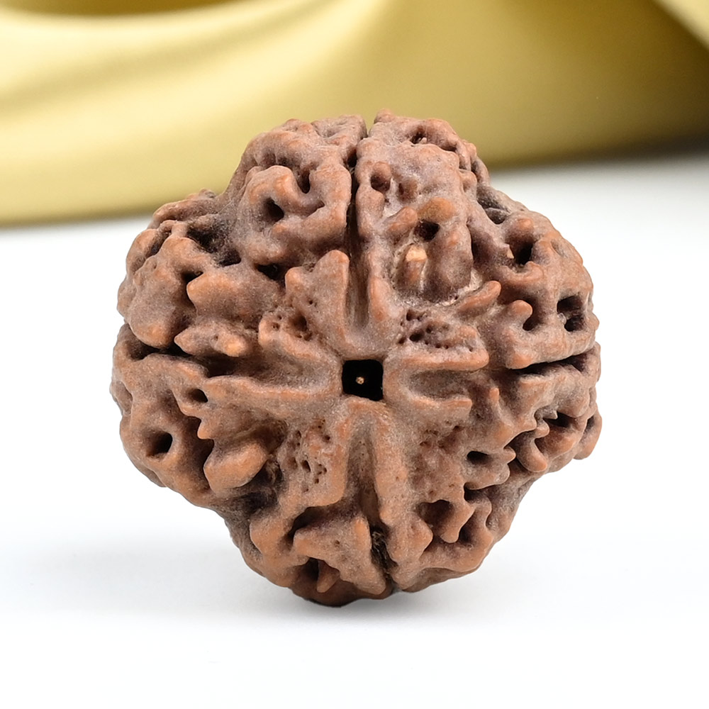 The 4 Mukhi Rudraksha embodies Brihaspati, also known as the Deva Guru or teacher of the Gods. Brihaspati is revered as the master of sacred wisdom, knowledge, hymns, and rituals. His name in Sanskrit translates to "Bhagwan of Sacred Speech." The 4 Mukhi Rudraksha helps bring out the wearer’s confidence and expressiveness, allowing them to overcome shyness and timidity. It brings melodious speech, supports creativity, clear communication, and a positive outlook, guiding the wearer towards personal growth and transformation in many areas of life.