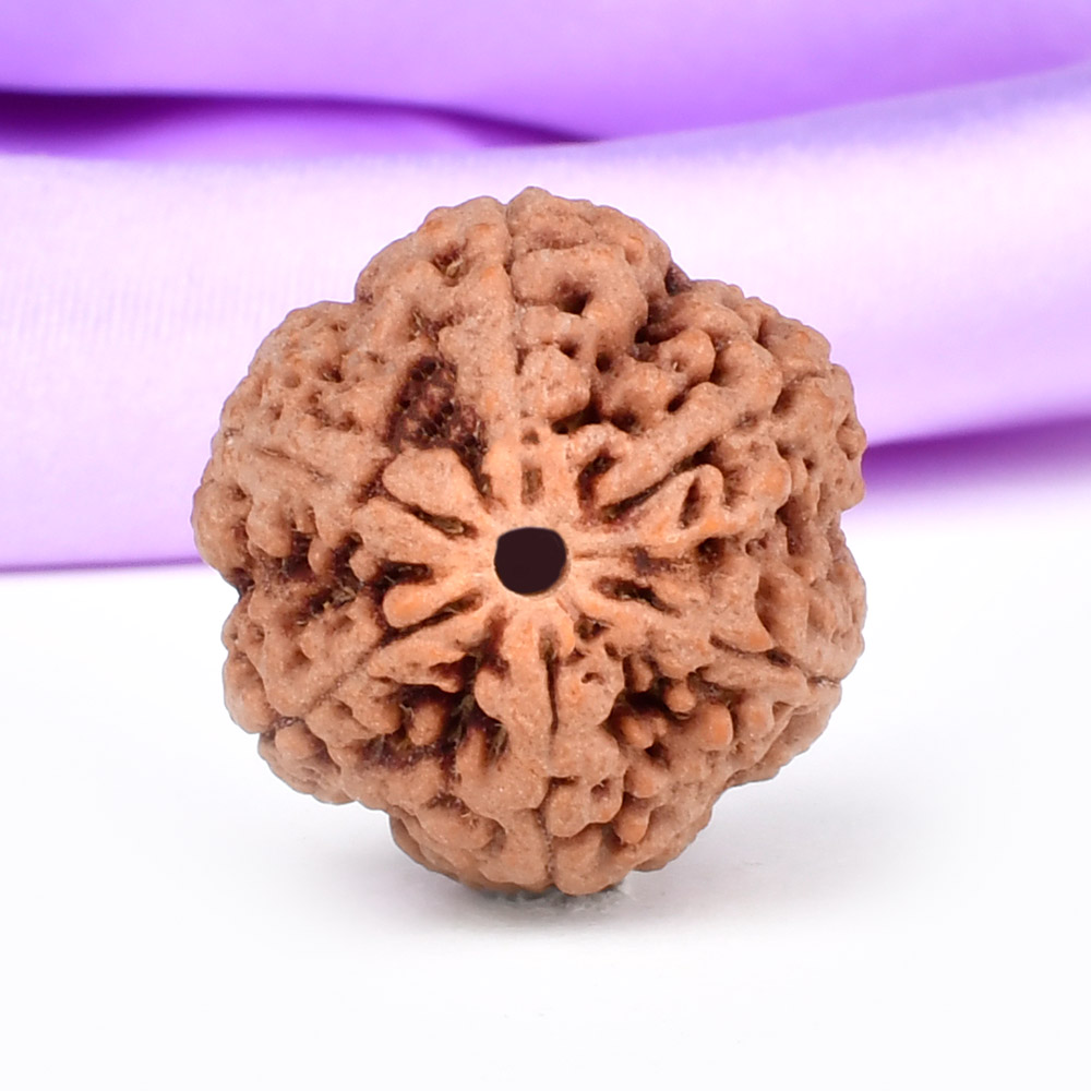 The 6 Mukhi Rudraksha embodies Lord Kartikeya, the deity of war. It instills essential warrior qualities needed to confront and conquer life's challenges, such as determination, bravery, perfection, grounding, and focus. This Rudraksha promotes mental clarity and spiritual strength while aiding in overcoming mental inertia, as well as the vices of lust and ego. Furthermore, it provides protection against envy and promotes prosperity by safeguarding the wearer's belongings and attracting material stability.