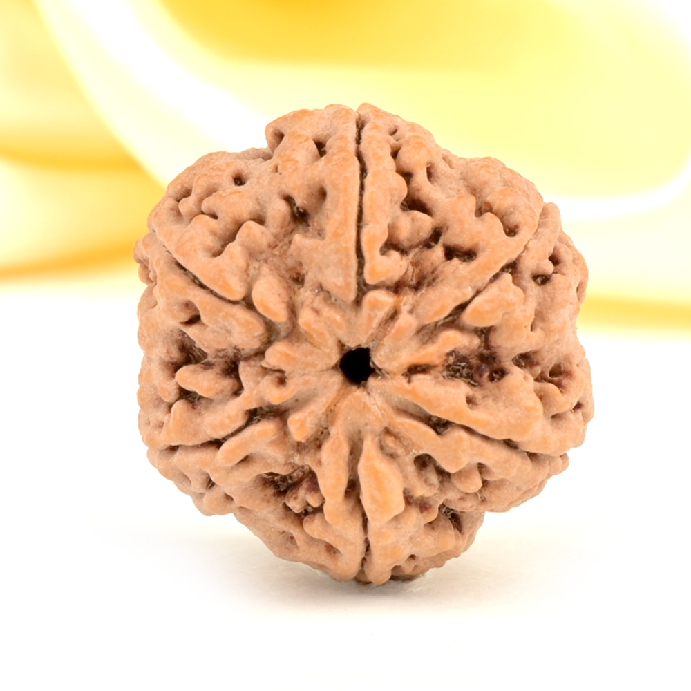 The 6 Mukhi Rudraksha embodies Lord Kartikeya, the deity of war. It instills essential warrior qualities needed to confront and conquer life's challenges, such as determination, bravery, perfection, grounding, and focus. This Rudraksha promotes mental clarity and spiritual strength while aiding in overcoming mental inertia, as well as the vices of lust and ego. Furthermore, it provides protection against envy and promotes prosperity by safeguarding the wearer's belongings and attracting material stability.