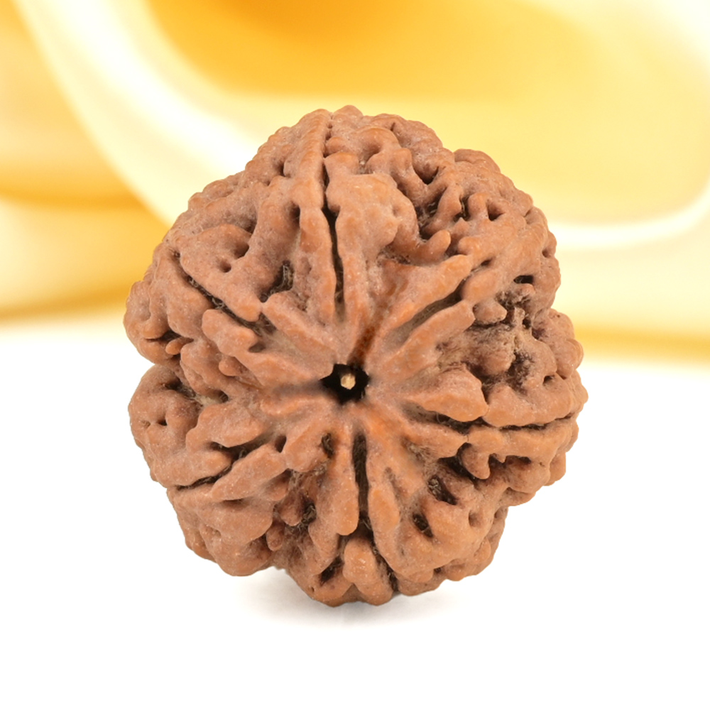 The 6 Mukhi Rudraksha embodies Lord Kartikeya, the deity of war. It instills essential warrior qualities needed to confront and conquer life's challenges, such as determination, bravery, perfection, grounding, and focus. This Rudraksha promotes mental clarity and spiritual strength while aiding in overcoming mental inertia, as well as the vices of lust and ego. Furthermore, it provides protection against envy and promotes prosperity by safeguarding the wearer's belongings and attracting material stability.