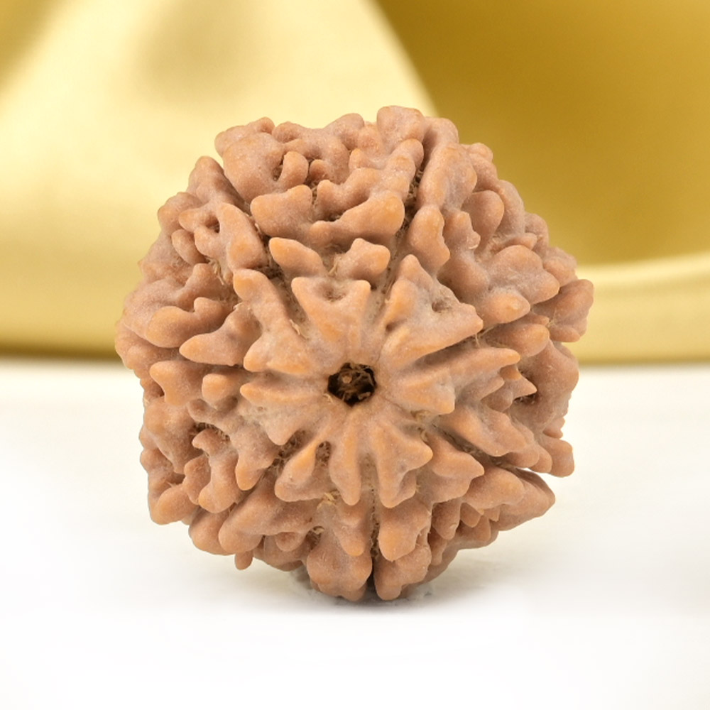 The 7 Mukhi Rudraksha symbolizes Lakshmi, the Goddess of wealth and prosperity. This bead is said to bring good luck, wealth, love, and attract new opportunities for success. It is especially beneficial for those facing financial difficulties and guides them toward abundance and steady progress in life. Additionally, it enhances self-worth, encourages self-love, and provides relief from health issues related to the pancreas and spleen, including diabetes.