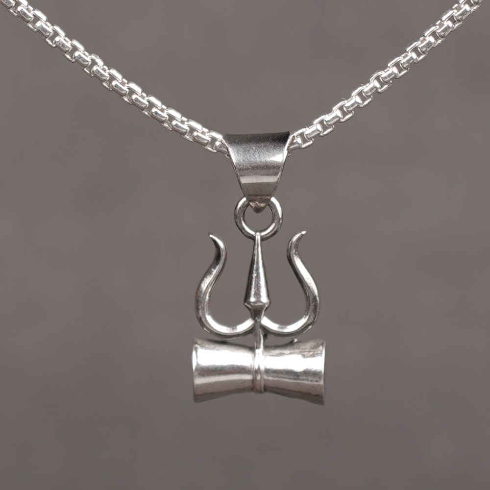 This 925 sterling silver pendant beautifully combines Lord Shiva’s Trishul (trident) and Damru (drum), symbolizing power, cosmic balance, and divine sound energy. The Trishul represents the three fundamental aspects of existence—creation, preservation, and destruction, while the Damru signifies rhythm, cosmic vibrations, and spiritual awakening.