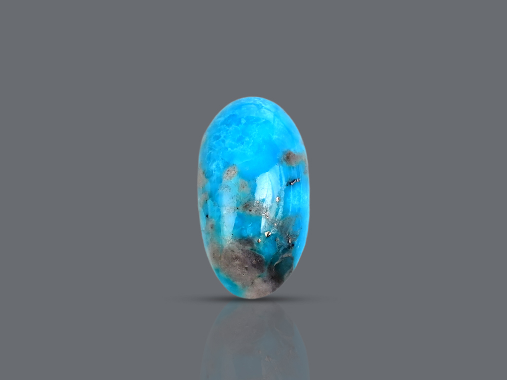 A lovely oval shaped, superior quality Turquoise(Feroza) Gemstone, is perfect for wearing as a ring, pendant or bracelet. It empowers the wearer with clear speech, self expression and a sweet way of speaking. It is a great stone to wear for uplifting mood, especially for those who are prone to mood swings. Turquoise is known as a stone of ‘enduring love’ and brings love and romance in life. It alleviates anxiety, worry and is good for those suffering from panic attacks or hysteria.