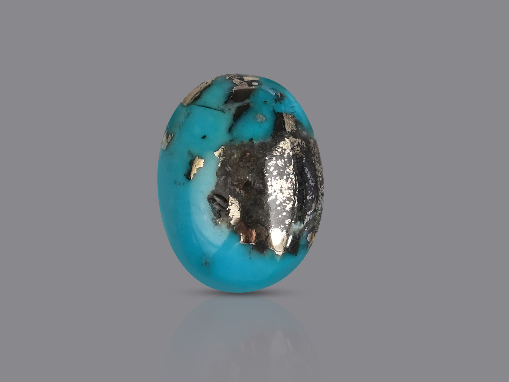 A lovely oval shaped, superior quality Turquoise(Feroza) Gemstone, is perfect for wearing as a ring, pendant or bracelet. It empowers the wearer with clear speech, self expression and a sweet way of speaking. It is a great stone to wear for uplifting mood, especially for those who are prone to mood swings. Turquoise is known as a stone of ‘enduring love’ and brings love and romance in life. It alleviates anxiety, worry and is good for those suffering from panic attacks or hysteria.