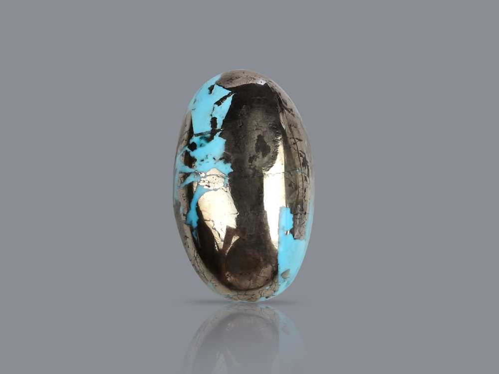 A lovely oval shaped, superior quality Turquoise(Feroza) Gemstone, is perfect for wearing as a ring, pendant or bracelet. It empowers the wearer with clear speech, self expression and a sweet way of speaking. It is a great stone to wear for uplifting mood, especially for those who are prone to mood swings. Turquoise is known as a stone of ‘enduring love’ and brings love and romance in life. It alleviates anxiety, worry and is good for those suffering from panic attacks or hysteria.