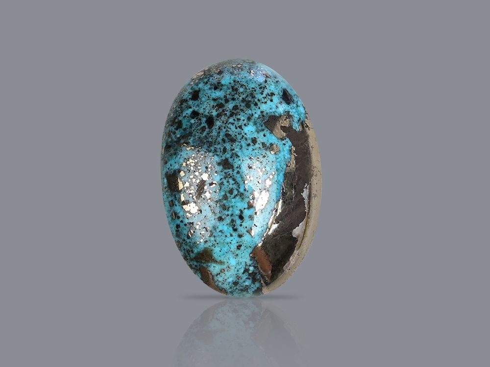 A lovely oval shaped, superior quality Turquoise(Feroza) Gemstone, is perfect for wearing as a ring, pendant or bracelet. It empowers the wearer with clear speech, self expression and a sweet way of speaking. It is a great stone to wear for uplifting mood, especially for those who are prone to mood swings. Turquoise is known as a stone of ‘enduring love’ and brings love and romance in life. It alleviates anxiety, worry and is good for those suffering from panic attacks or hysteria.
