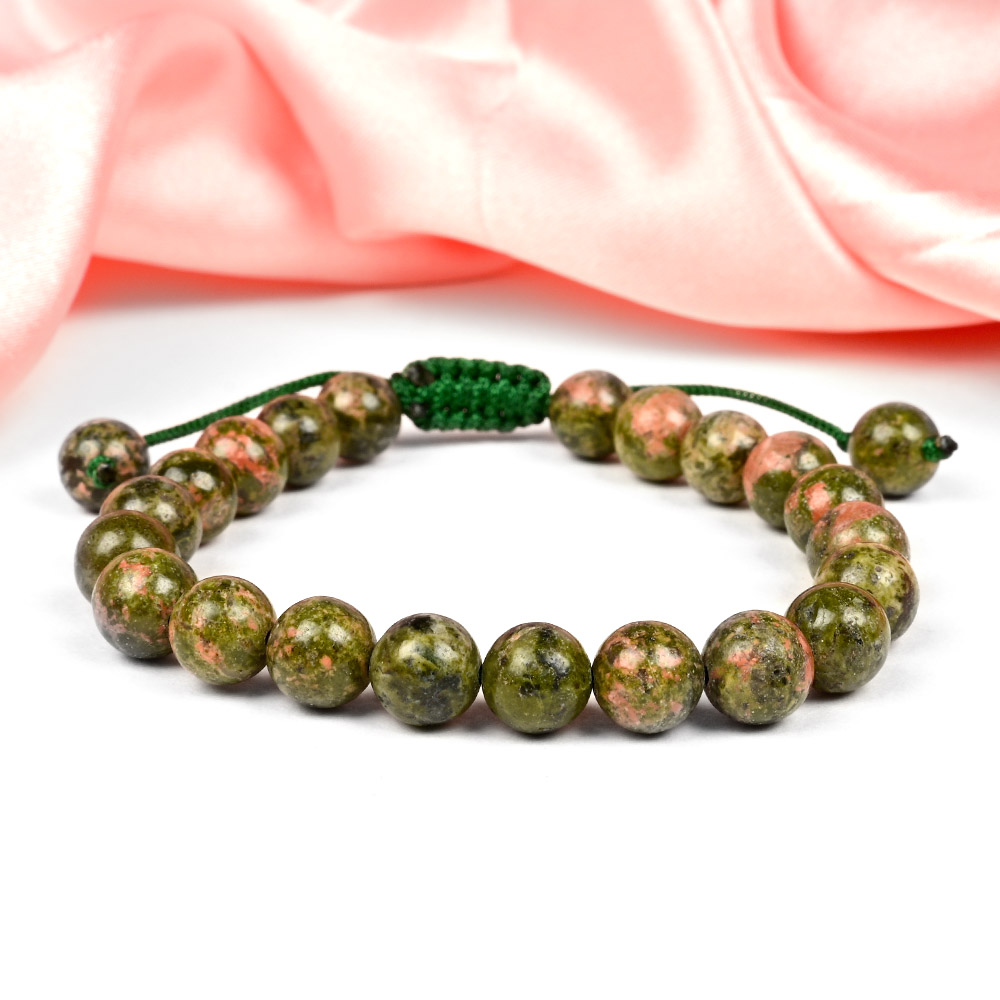 This beautiful Unakite Adjustable Bracelet is crafted with natural green and pink Unakite beads, intricately strung on durable thread with adjustable ends for a comfortable fit. The warm, earthy tones of Unakite radiate a sense of balance, harmony, and grounding, making it both elegant and meaningful.