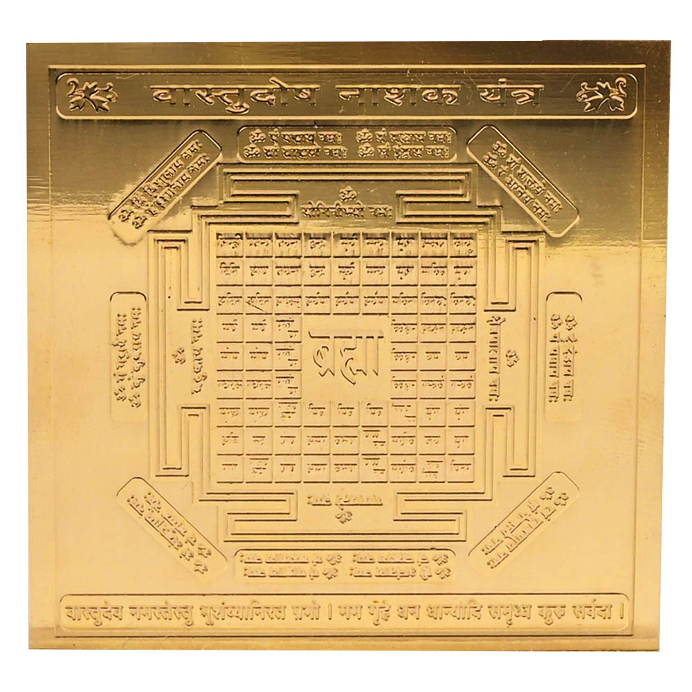 Exquisite pocket-sized Vastu Dosh Nashak Yantra meticulously crafted on a copper plate with a stunning gold finish. The Yantra is perfect for placement in the North-East direction of the room, or for carrying in your pocket, or for placing on your puja altar or work desk. It effectively eliminates Vastu defects in your workplace, shop, or home, and mitigates the negative impacts caused by Vastu dosha (defects).