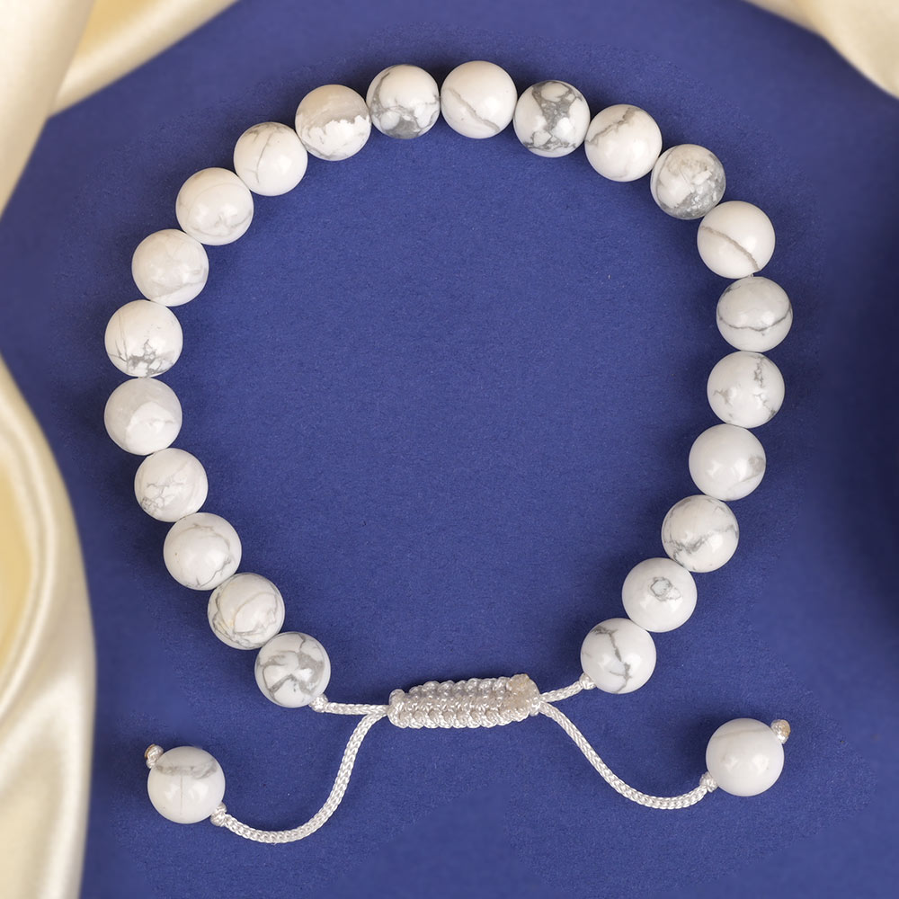 This elegant White Howlite Adjustable Bracelet is crafted from smooth, round natural Howlite beads, known for their calming white hue with delicate grey marbling that gives each bead a unique, cloud-like appearance. The bracelet is designed with a durable white adjustable cord, allowing for a comfortable and secure fit for any wrist size. Its minimalist design, paired with the serene beauty of the Howlite stones, makes it both a stylish accessory and a meaningful piece of spiritual jewelry suitable for daily wear. White Howlite is a stone of peace, patience, and mindfulness. It is highly regarded for its ability to absorb stress, calm an overactive mind, and promote emotional balance. Wearing this bracelet encourages tranquility, reduces anger and anxiety, and enhances focus during meditation or prayer. It is also believed to aid in sleep by soothing emotional turbulence and grounding energy. Ideal for those seeking inner peace, mental clarity, and emotional healing, this bracelet harmonizes the body’s energy and fosters spiritual awareness. It is perfect for meditation practitioners, professionals dealing with stress, or anyone wishing to carry a sense of serenity throughout their day. The White Howlite Adjustable Bracelet beautifully merges simplicity, sophistication, and spiritual well-being in one timeless design.