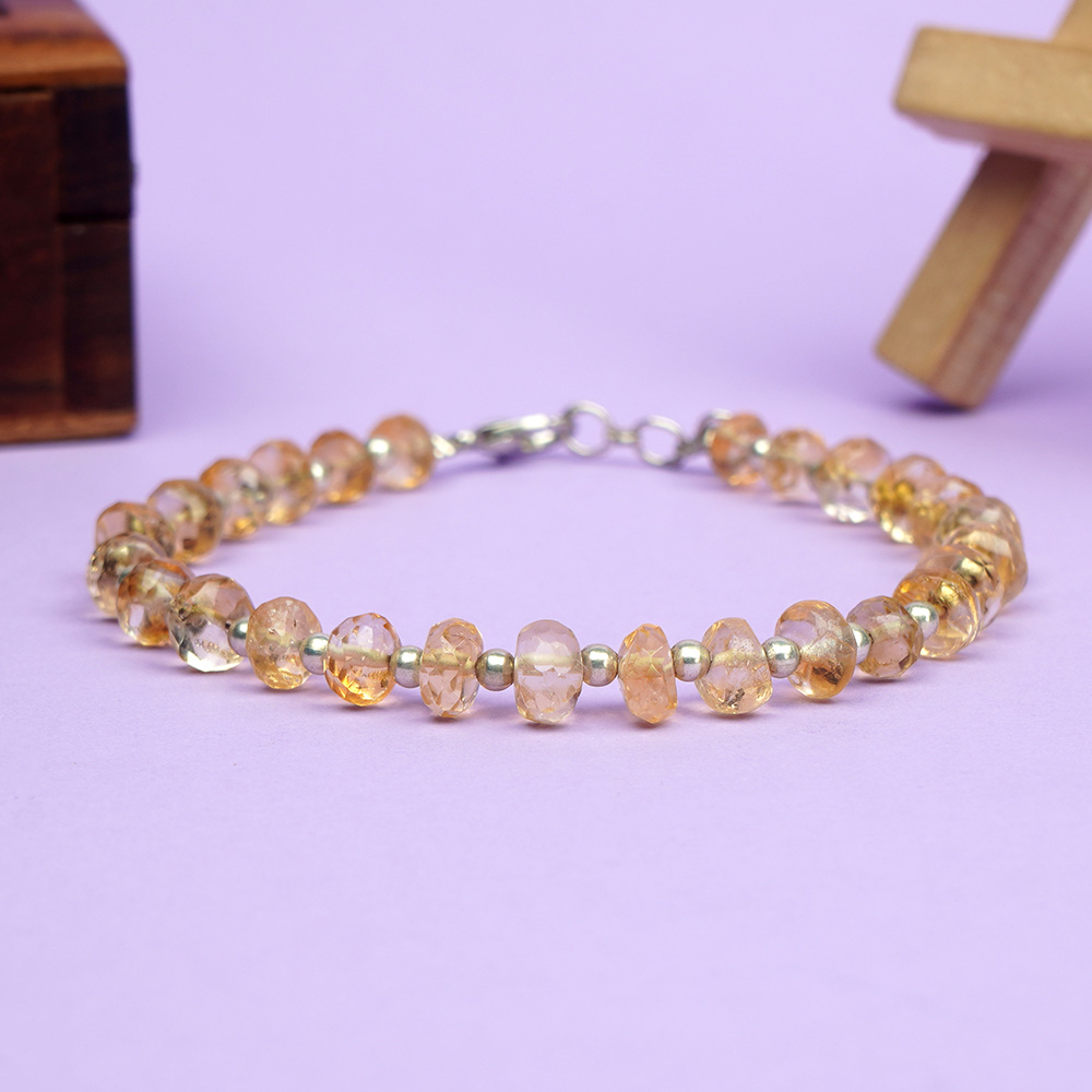 Citrine is known for its vibrant yellow to golden hues, symbolizing abundance, positivity, and manifestation. It is often referred to as the "merchant's stone," believed to attract wealth, success, and good fortune. The faceted beads enhance the stone’s natural sparkle, making this bracelet both a stylish accessory and a tool for attracting positive energy.