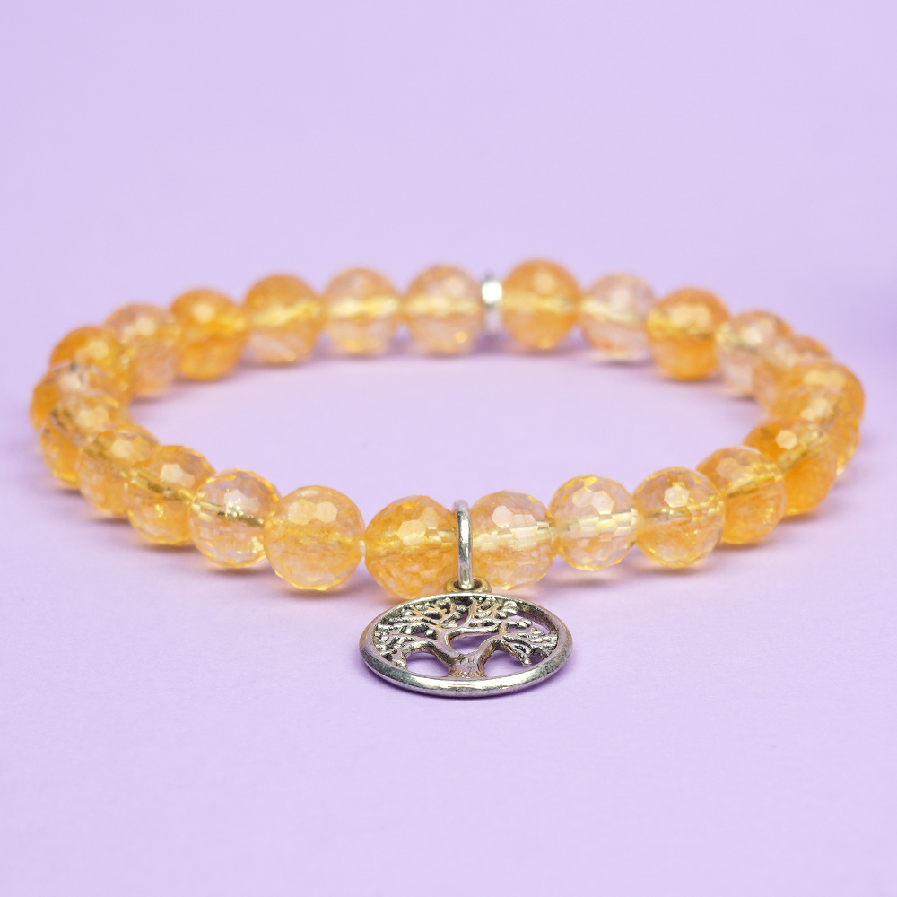 Citrine is known for its vibrant yellow to golden hues, symbolizing abundance, positivity, and manifestation. It is often referred to as the "merchant's stone," believed to attract wealth, success, and good fortune. The faceted beads enhance the stone’s natural sparkle, making this bracelet both a stylish accessory and a tool for attracting positive energy.