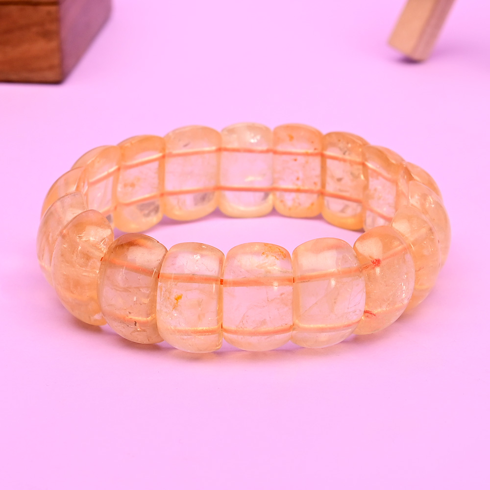 The Natural Citrine Faceted Bracelet is designed with sleek, rectangular faceted beads that reflect light beautifully, giving it a radiant and elegant appearance. Strung on an elastic band, this bracelet ensures a comfortable and flexible fit, making it suitable for daily wear.