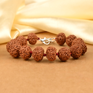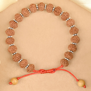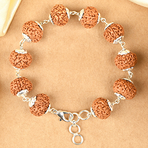 Handcrafted bracelets made of natural 8 mukhi Rudraksha beads from Java. 8 Mukhi Rudraksha is ruled by Lord Ganesha and is worn for success in all undertakings, stability, willpower, support and enhanced wisdom and intellect. Our bracelets are creatively designed in silver and adjustable thread by our team of skilled artisans in accordance to our well-researched stringing method which ensures quick results. These bracelets are best worn regularly to derive optimum results.