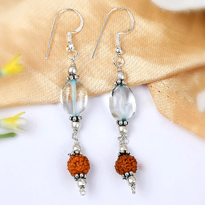 Blue Topaz earrings, creatively designed with Rudraksha beads, offer inner peace, calmness, and improved communication. These light and versatile earrings are perfect for both traditional and casual wear.