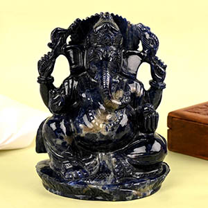 Find auspiciousness and wisdom with Ganesha Blue Sodalite idols. Crafted from natural Blue Sodalite gemstone, these idols remove obstacles and enhance creative skills. They bring calm, self-expression, and prosperity to your home or office.