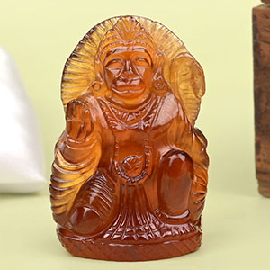 Charming range of meticulously crafted Lord Hanuman gemstone idols enhanced with energies of gemstones. These idols portray Hanuman idol in seated, kneeling, meditating and other poses which hold varying significance. Crafted by skilled artisans, each idol is meticulously crafted from 100% natural and non-heated gemstone to provide optimum benefits of the gemstones along with blessings of the Deity. Lord Hanuman is worshipped for protection from negative influences and blessings of strength, courage, vigilance and valor. Available are idols made in Ruby, Gomedh, Jade, Sapphire, Crystal quartz and other natural gemstones.