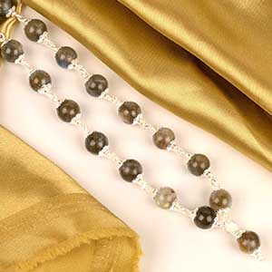 Collection of Labradorite Necklace Malas made of natural Labradorite Gemstone Beads. The Labradorite Gemstone looks mystical, flashing and shifting colours, and has been favored by mystics. Washer shape, Round shape bead necklaces, strung in different styles, make the Malas look attractive to wear. Wearing the Labradorite Mala brings clarity, famously provides spiritual insight, aids in clear expression, preferred by healers and seekers of spirituality as it enhances psychic and intuitive powers, creativity, balances energies and much more.