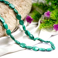 Discover an exclusive range of Necklaces beautifully strung in natural Malachite stone. These necklaces are available in various making options. Malachite is the stone of protection with many therapeutic and spiritual benefits. It takes in negative energies from the atmosphere of your place as well as from your body. It protects you against radiation of all kinds and heals your mental, subtle and physical being. The stone provides relief in cold sweats, asthma, intestinal problems and rheumatic pain. Also it helps cure issues related to kidney and gallstones. It promotes the expression of feelings, eliminates shyness and makes you aware of your responsibility. Also, it encourages friendships and compassion for others.