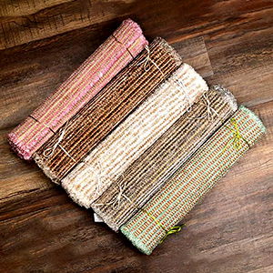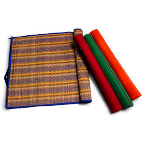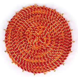 Meditation Mats or asan are used by the devotee to sit on during Puja rituals and ceremonies. They are made using natural kusha grass, banana fibres, cotton thread and also wool. They enhance meditation and improve grounding. Thus an ideal Asan in the Puja altar is a very important meditation accessory. A decorated asan can help add color and festivities to the Puja altar and the Puja ceremony.