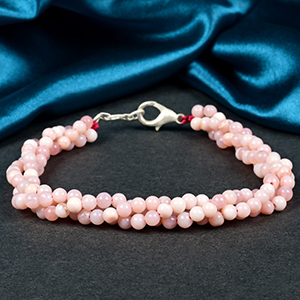 Collection of natural Opal Bracelets, made with beads in hues of Pink, Blue and Saffron. The different bead shapes make the Bracelets look beautiful, with the option of Opal with Rudraksha beads combination. Wearing the Opal Bracelets makes the wearer charming, it draws prosperity, new opportunities in business, love, good fortune, stability, bonds family with love etc. The Pink Opal Bracelet is primarily worn for love. They can be worn daily and apt as gifts for loved ones.