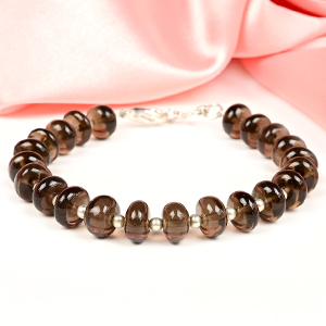 Exclusive range of bracelets beautifully strung in natural Smoky Quartz stone. These bracelets are available in various making options. The Smoky Quartz is regarded as the stone of high frequency power. It quickly dispels negative effects of radiation and relieves chronic pain, muscle cramps, headaches and pains in the shoulders and back. Also, It helps regulate fluids in your body and the assimilation of minerals. It dissolves negative energies of any sort and lets the natural, positive energies settle in. Also it keeps at bay any fear, stress, anger, resentment, depression and fatigue. It is best for intense prayer and deep meditation. For those seeking spiritual strength, it is highly recommended to use a smoky quartz.