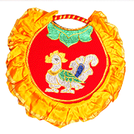 Browse our collection of artistic Temple Fans which are dexterously designed and handmade by craftsmen of Madurai. The fans are round shaped and have beautiful patchwork embroidery on either sides of the fan. Each fan has vibrant Satin frills as borders and a sturdy decorated handle. Options of various designs are available; these Temple Fans are used to lovingly fan the deities in puja alter after offering Naivedyam or before offering puja.