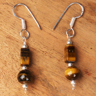 Discover Tiger Eye stone earrings of various designs, some combined with Rudraksha beads. Tiger Eye provides strength, courage, and balance. These lightweight and trendy earrings match all kinds of clothing.