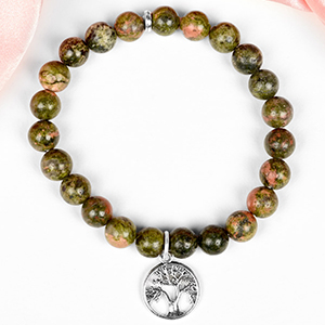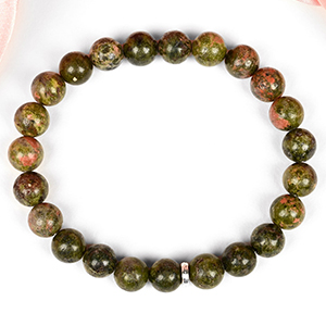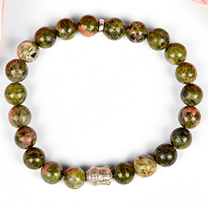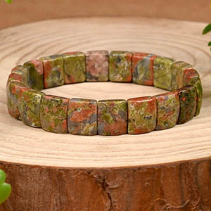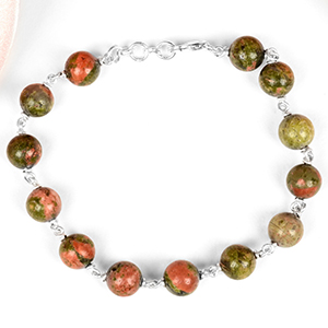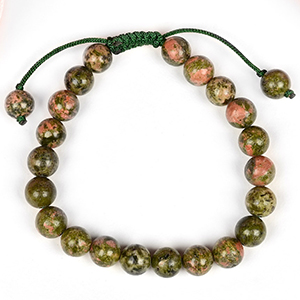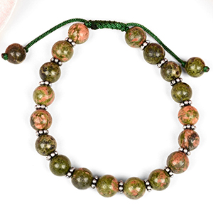 Collection of Unakite Bracelets made from natural Unakite gemstone. The blend of Green and Pink colours of the Unakite look splendid. These Bracelets are available in options of the smooth round beads, Elliptical beads, Cushion beads etc. Unakite gemstone has tremendous nurturing energies, properties of love and compassion, encourages the spiritual vision and psychic abilities and dispels negative energies as well. Strung in elastic bands, each bracelet is designed trendy and gracefully.