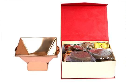 A complete kit that contains items required for the Holi bonfire: Mango sticks, Cow dung cakes, kapur, ghee, jau grains, sea salt and more.