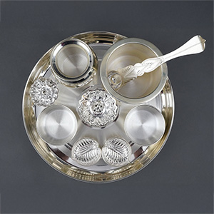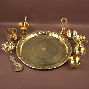 Rudra Centre brings an extensive collection of Puja Articles which caters to all that is required for daily and special Puja Vidhis. We offer variants of designs and sizes in each category. The list includes handcrafted Puja Mandirs, Puja Pedestals, offering Bowls, Panchpatra, intricately carved Puja Thalis, Abhishek Vessels, in different materials, Pure Silver/German Silver articles like Kalash, set of Shodash Upachara and Several other Puja Articles, which we deliver at your doorstep.